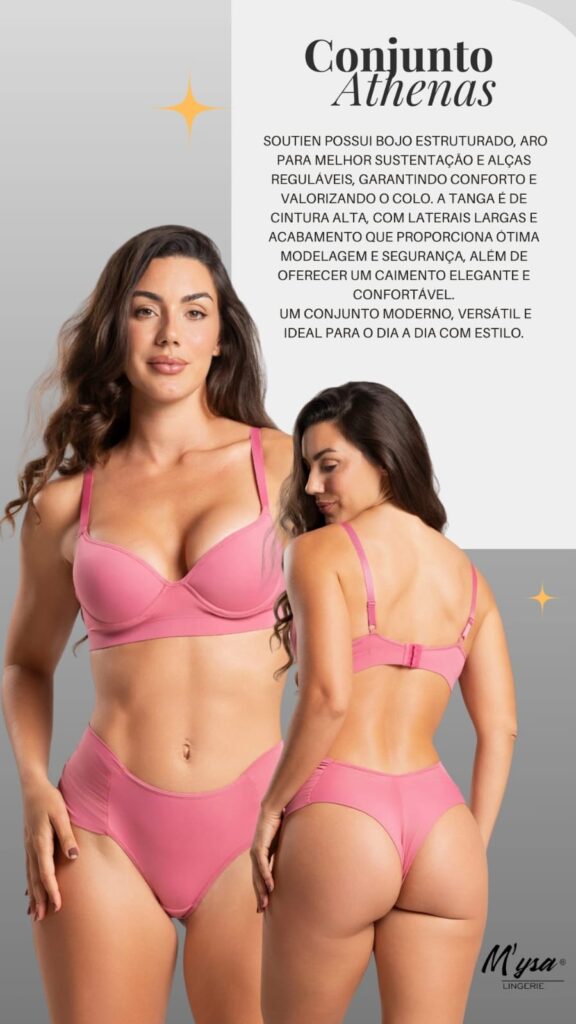 Na M’ysa você encontra Linha Fitness, toda linha de lingerie desde a Plus size, meias, calcinhas, soutiens, cintas modeladoras, conjuntos, camisolas, pijamas.